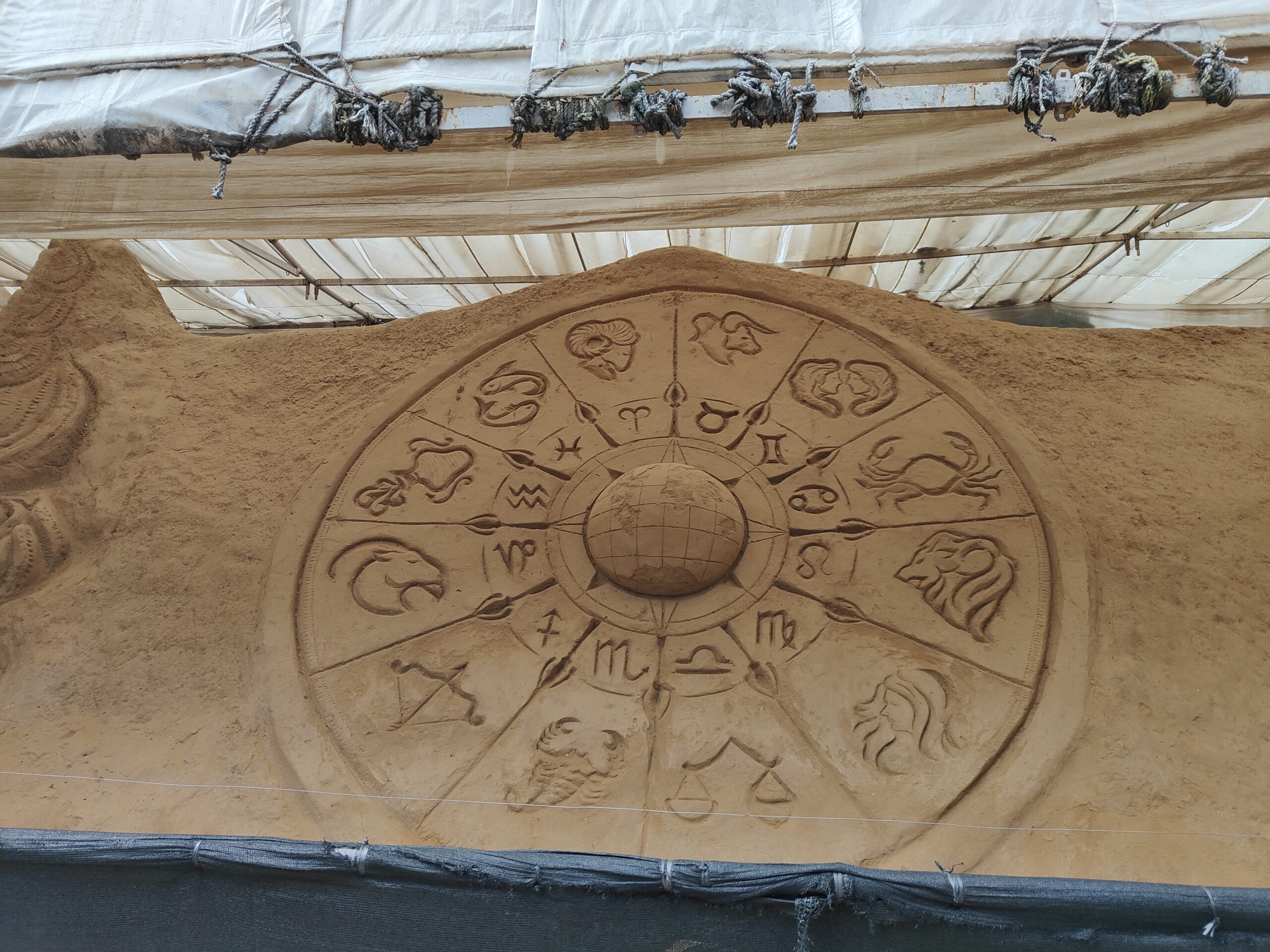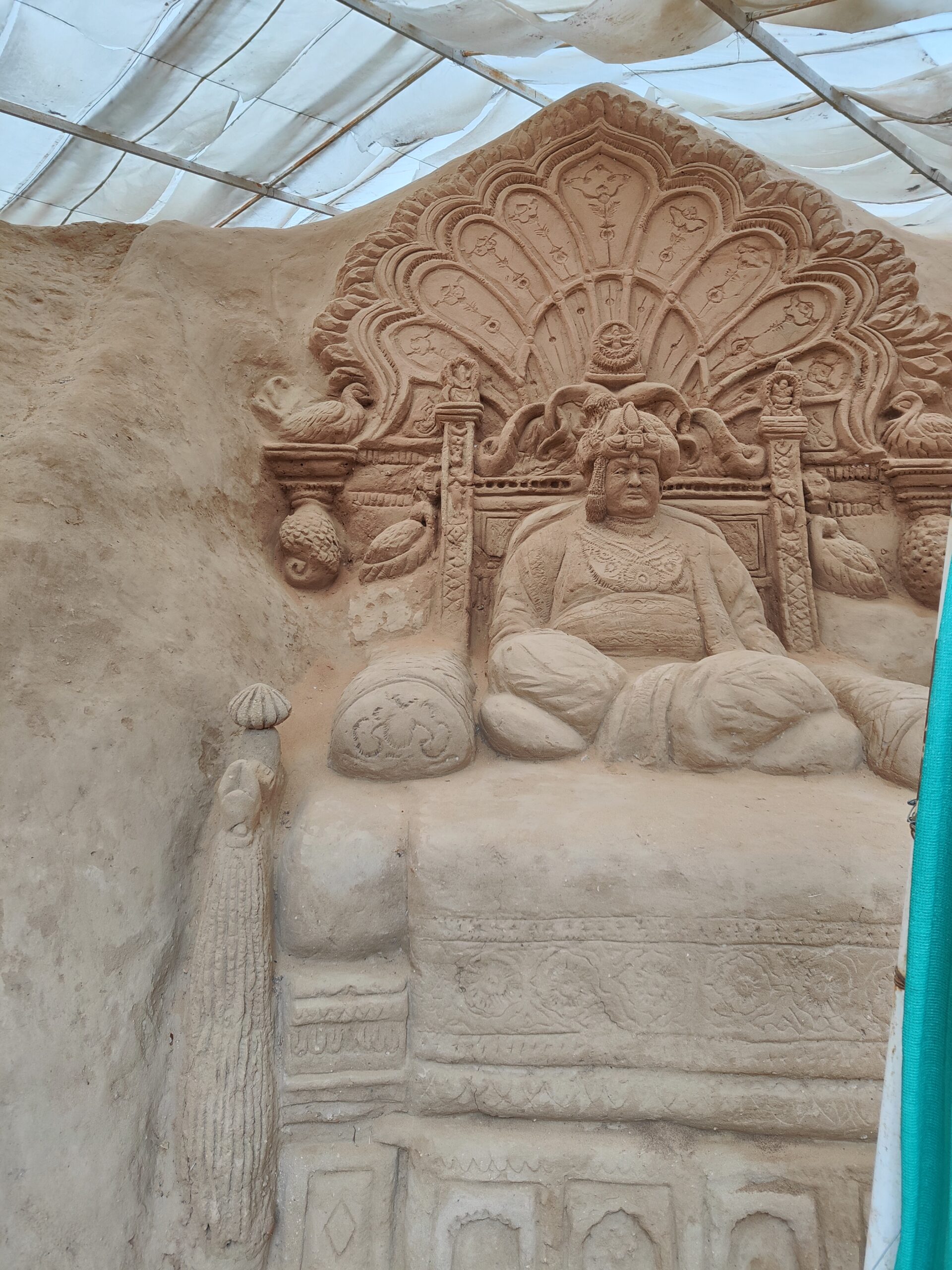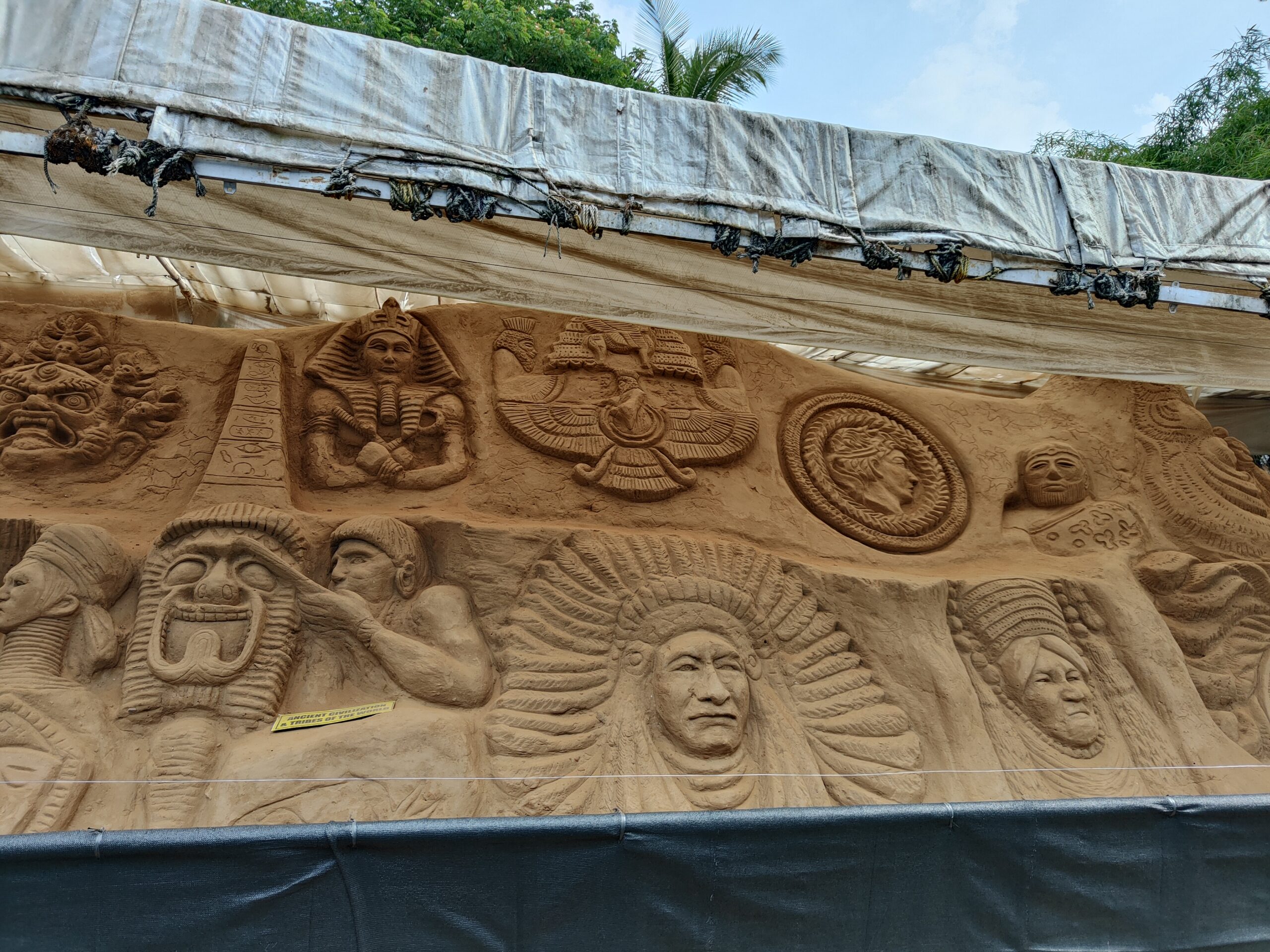 The sand structures are protected inside metal closings, and a waterproof yet translucent sheet covers the roof. This protects them from rain and direct sunlight. As these delicate structures are made with sand, water and some glue, they are easily damaged. Hence they are brushed weekly and reconstructed in case of damage. Pests such as insects, rodents, and snakes pose a significant threat, so appropriate insecticides and pesticides are applied to the statues.