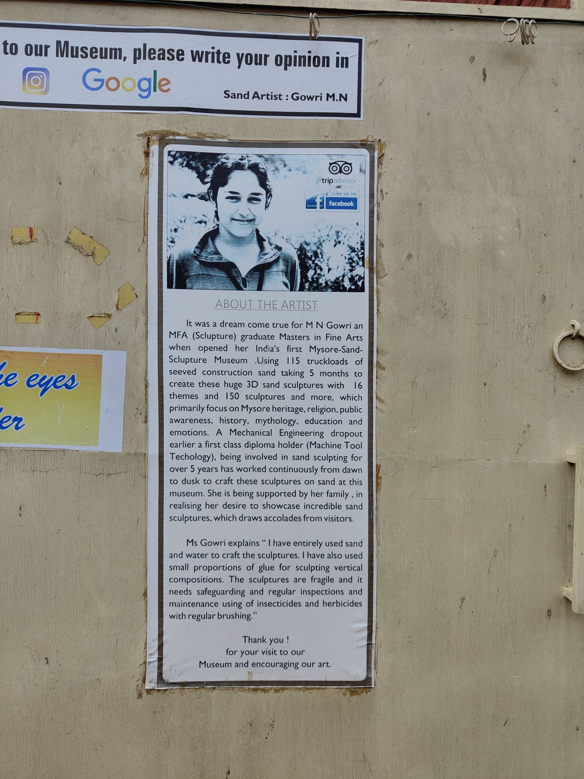 The idea to establish a museum got into her in 2012 when she wanted to safeguard the sand arts that were typically destroyed after every exhibition. For this, she leased 1-acre land at the base of Chamundi Hills for a 20 lakh loan. Finally, her perseverance and hard work of over four months bore fruit as the museum was unveiled in 2014.