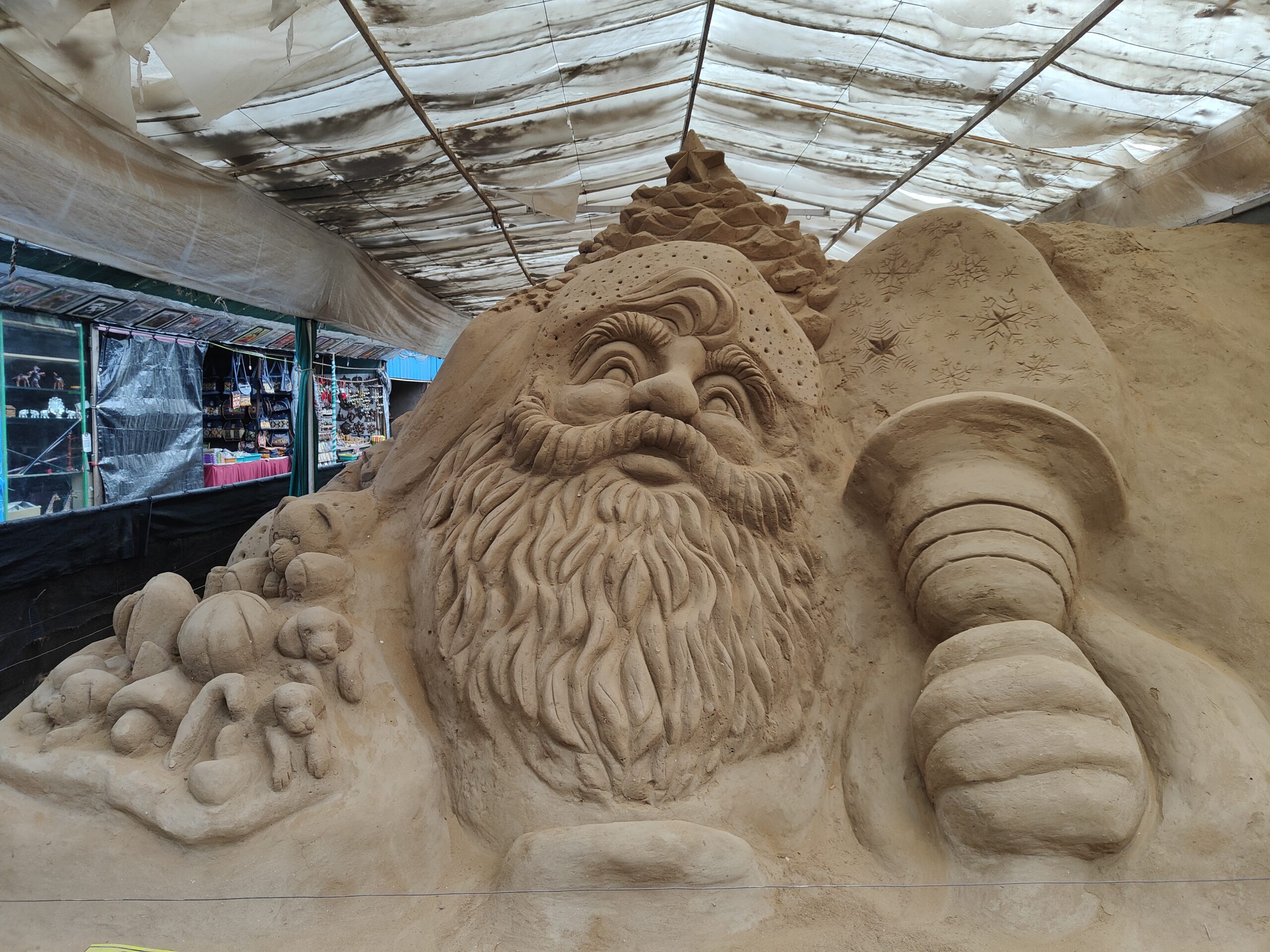 A beautiful representation of the goddess Chamundeshwari and the iconic Laughing Buddha are some of the distinct ones. The themes also transcend borders with creations of Western fairy tales, cartoons like Tom and Jerry and Santa Claus and middle eastern stories like The Arabian Nights. The ancient Egyptian era is portrayed with sculptures of pyramids and pharaohs.